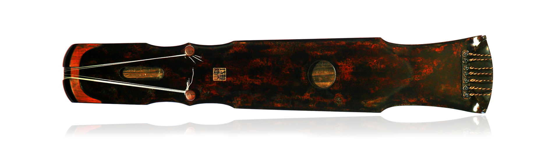 历代传世名琴中,“伏羲氏”琴尤受历代琴人喜爱,不仅因其造型圆浑古朴,音色宏厚内敛,富有内在张力,更因伏羲氏为中华民族文化精神代表,其博大精深,包容守一之品格令世人神往。钧天坊制“钧天伏羲”,总结并吸收历代传世“伏羲式”琴之优点,汇藏一身,选良材,巧思量,精工妙斫,琴体略大于各传世伏羲,气宇非凡,以琴立志,以承伏羲先祖之精神。