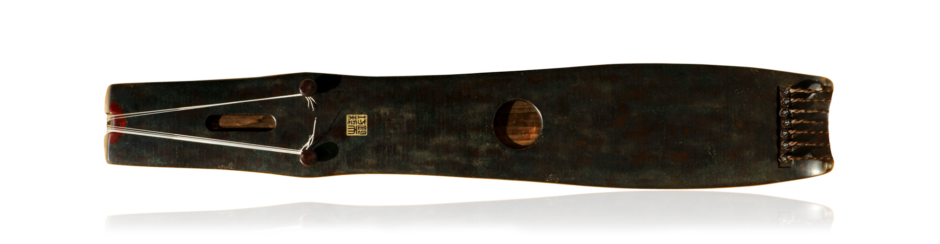 净瓶琴,形制由王鹏先生所创,琴体较之以往头尾倒置,即琴尾为瓶口,琴头为瓶底,不同于“玉净瓶”之项部流畅细长,此款净瓶琴则在颈肩处微有外张,仿佛将瓶口降至此处,琴头至此段则似净瓶之盖,盖与身对扣于如喇叭形的瓶口处,生动传神。琴身开合有度,线条流畅,瓶腹浑圆,简练稳重。可谓既具亭亭孑立之纤逸,又有温润如玉之敦实。琴音圆润清和,独具雅淡,抚之可观照自身,圆融修善,更可体悟“本无一物,不惹尘埃”。