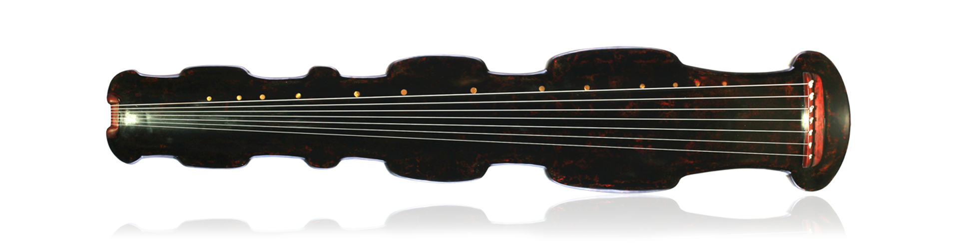 逸响,原意为雄浑奔放的音乐或诗文,元朝张简即有诗云:“鸣琴发逸响,嘉树含清辉。”刘勰《文心雕龙·隐秀》亦有:“动心惊耳,逸响笙匏。”都是描述音乐的浑然劲健。此琴选材与音色足见“凝云汉逸响,抱娑罗灵光”之境,形神韵三者堪称融为一体。其以战国器物云纹为创作元素,琴体线条奔涌,如云卷腾。琴头作椭圆,身形凹凸交错,除头尾外通体有四处外展,大小不一。造型大胆豪放,颇具钧天神韵、更显逍遥世外之宏大气象。