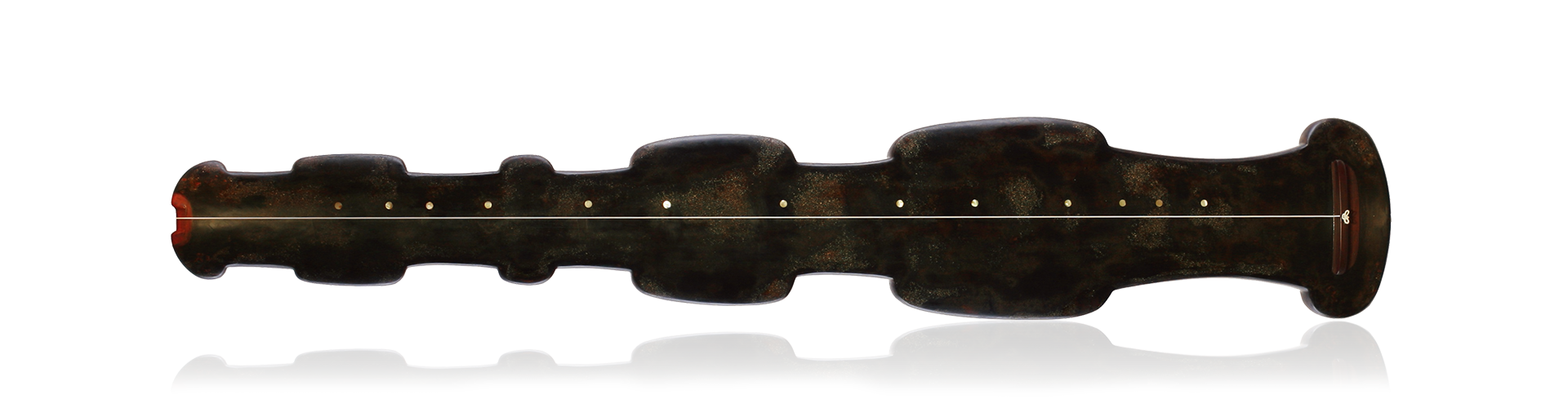 独弦琴亦为一种古老的弹奏乐器,从一根琴弦上即能表现出丰富的乐音。杜甫《饮中八仙歌》曾赞崔宗之“皎如玉树临风前”,“玉树”原形容人气宇轩昂,风度秀逸,以其命名此琴,为其身姿较之钧天云和式其他琴款更为收束挺拔,观之若斐然君子,修长孑立,如玉树伫立,临迎风中,俊朗不凡。琴身造型线条与“逸响”相仿,但更为窄瘦,以合独弦之美。单弦出音,亦具神韵,如闻“深山邃谷,老木寒泉,风声簌簌。”(《溪山琴况》之“古”)