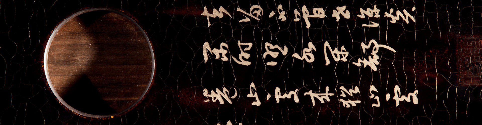 琴体面板采用明代杉木老梁,底板为梓,一天一地,接合处渺不可寻,这对于蕉叶琴制的纤薄形体要求而言至为难得。琴身髹大漆鹿角霜灰胎,琴面斫蛇腹流水冰裂纹。通体肃黑,朱砂隐嵌,斑红微透。徽镶七彩螺钿,墨玉为轸,以配此文器。岳山、焦尾处均为小叶紫檀。