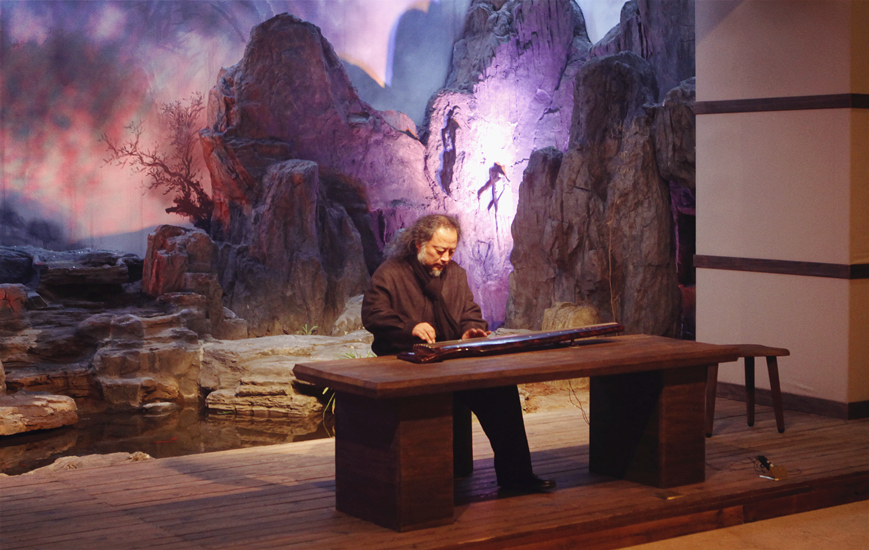 随后,钧天云和艺术家为来宾做了不同形式的古琴音乐演出,古琴独奏、琴歌、古琴与大提琴即兴……古今中西的演绎融合展示了古琴艺术传承的生命力和创新精神。