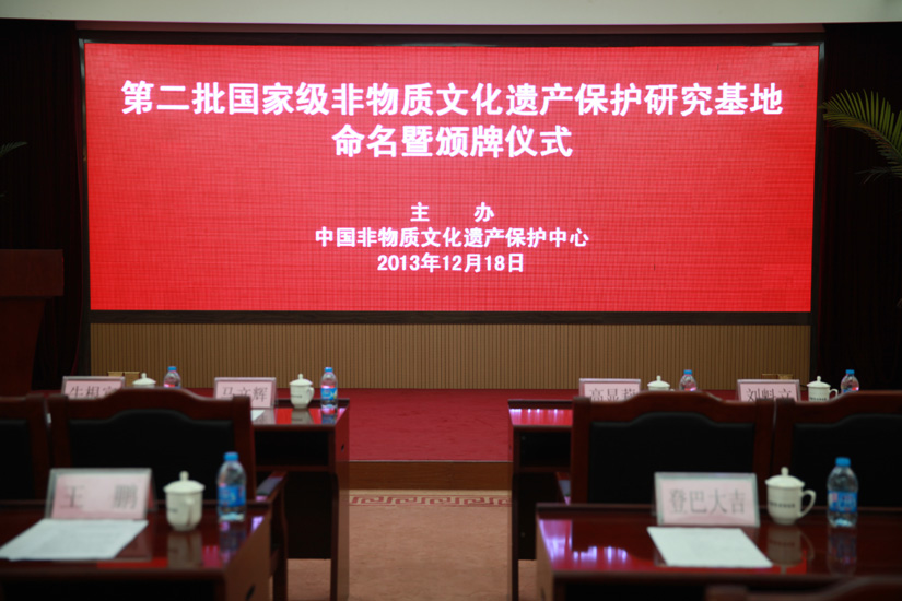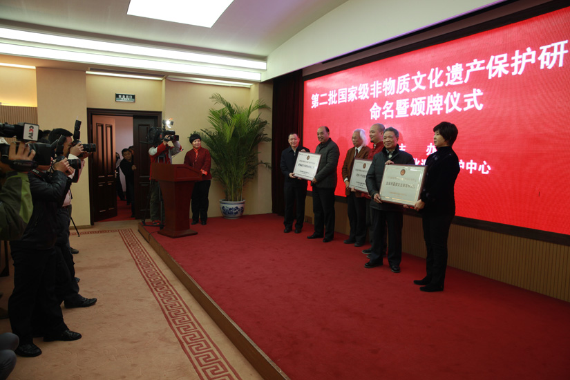 2013年12月18日, “第二批国家级非物质文化遗产保护研究基地命名暨颁牌仪式”在中国非物质文化遗产保护中心(中国艺术研究院)举行。中国非物质文化遗产保护中心常务副主任罗微主持会议,文化部非物质文化遗产司司长马文辉、副司长马胜德、王福州,中国艺术研究院党委书记、副院长高显莉,中国艺术研究院副院长牛根富,中国非物质文化遗产保护中心专家委员会副主任刘魁立等专家和领导出席了会议。文化部非物质文化遗产司司长马文辉, 钧天坊非遗传承人王鹏,专家代表刘锡诚等做了主题讲话。