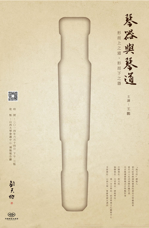 作为“琴晋——钧天坊古琴文化山西之行”系列活动之一,6月14日,正值中国第九个“文化遗产日”,当代斫琴大师、著名古琴艺术家王鹏先生在山西大学会议中心的博雅报告厅举办了一场别开生面的题为《琴器与琴道》的讲座,主题为“形而上之道,形而下之器”。这是继北京师范大学、首都师范大学后,“王鹏2014走进大学《琴器与琴道》系列讲座”的第三站。山西大学的一众学子以及当地爱好古琴与传统文化的朋友们热情响应,令当日现场座无虚席,共同谱写了当代晋地古琴与传统文化交流活动的精彩篇章。讲座由山西大学副校长杨军主持,山西省教育厅副厅长武保旺、山西大学音乐学院院长邱怀生亦出席了讲座现场。
