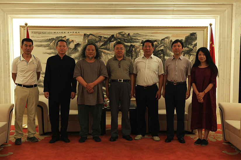 讲座前钧天坊代表与山西省教育厅副厅长武保旺[左四]、山西大学副校长杨军[左五]、山西大学音乐学院院长邱怀生[左六]座谈及合影。
