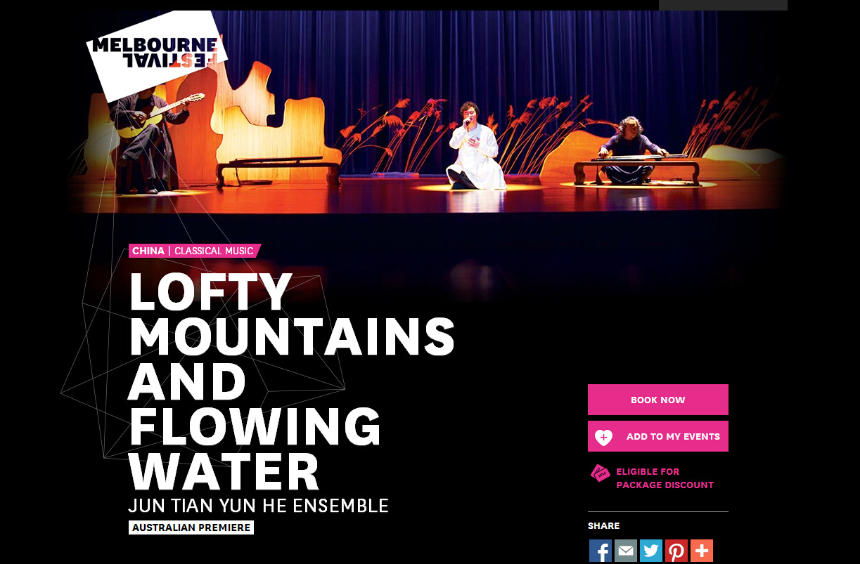 【售票信息】请参看“高山流水”钧天云和音乐会-墨尔本艺术节官网链接:http://www.melbournefestival.com.au/lofty-mountains--flowing-water/
