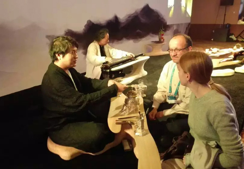 2015年9月13日至15日,“2015年丝绸之路国际文化论坛”于俄罗斯联邦首都莫斯科成功举办。本届论坛分为开幕式暨全体大会、主题分组讨论会和闭幕晚宴,期间同时举办了一场丝绸之路国际青年音乐会和丝绸之路国际青年艺术展。钧天坊创始人、斫琴艺术家王鹏受邀参加了此次论坛的交流活动,并与中国民俗学会-中国香文化研究中心主任、松风中国传统文化研究会会长孙亮以及钧天云和乐团的青年艺术家们,为与会嘉宾做了琴茶花香中国传统文化的展演,展现了中国传统文人生活于当代的传承,现场互动体验非常热烈。