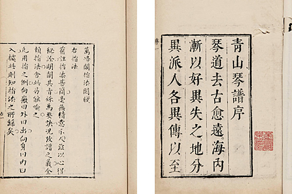 《大还阁琴谱》是虞山派继《松弦馆琴谱》之后的另一个中心文献。撰辑者徐上瀛,号青山,太仓人。徐青山所传的30多曲,经他的弟子夏溥在清康熙十二年(1673),编印为《大还阁琴谱》,即原来的《青山琴谱》。在清代刊行的琴谱中,此谱流传颇广。完足本除序跋外,还包括:《万峰阁指法秘笺》、《左右手二十势图说》、《弹琴规范》5则,琴谱32曲,有《溪山琴况》共二十四况,系统而详尽地论述了演奏要求,是关于琴的重要的美学理论著作。这一著作被认为是发展了宋人崔遵度“清丽而静,和润而远”的学说。
